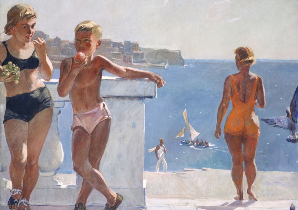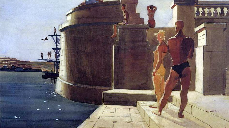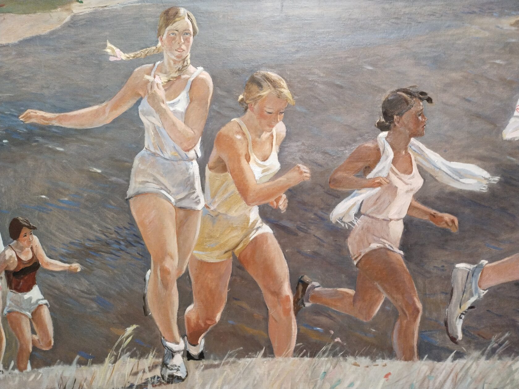Дейнека трактовал тело как символ физической мощи, юношеской непосредственности, результата торжества труда. Этот идеал, при всей его монументальности, не зависел от классической эстетики, а рождался в контексте индустриального и спортивного подвига советского человека.